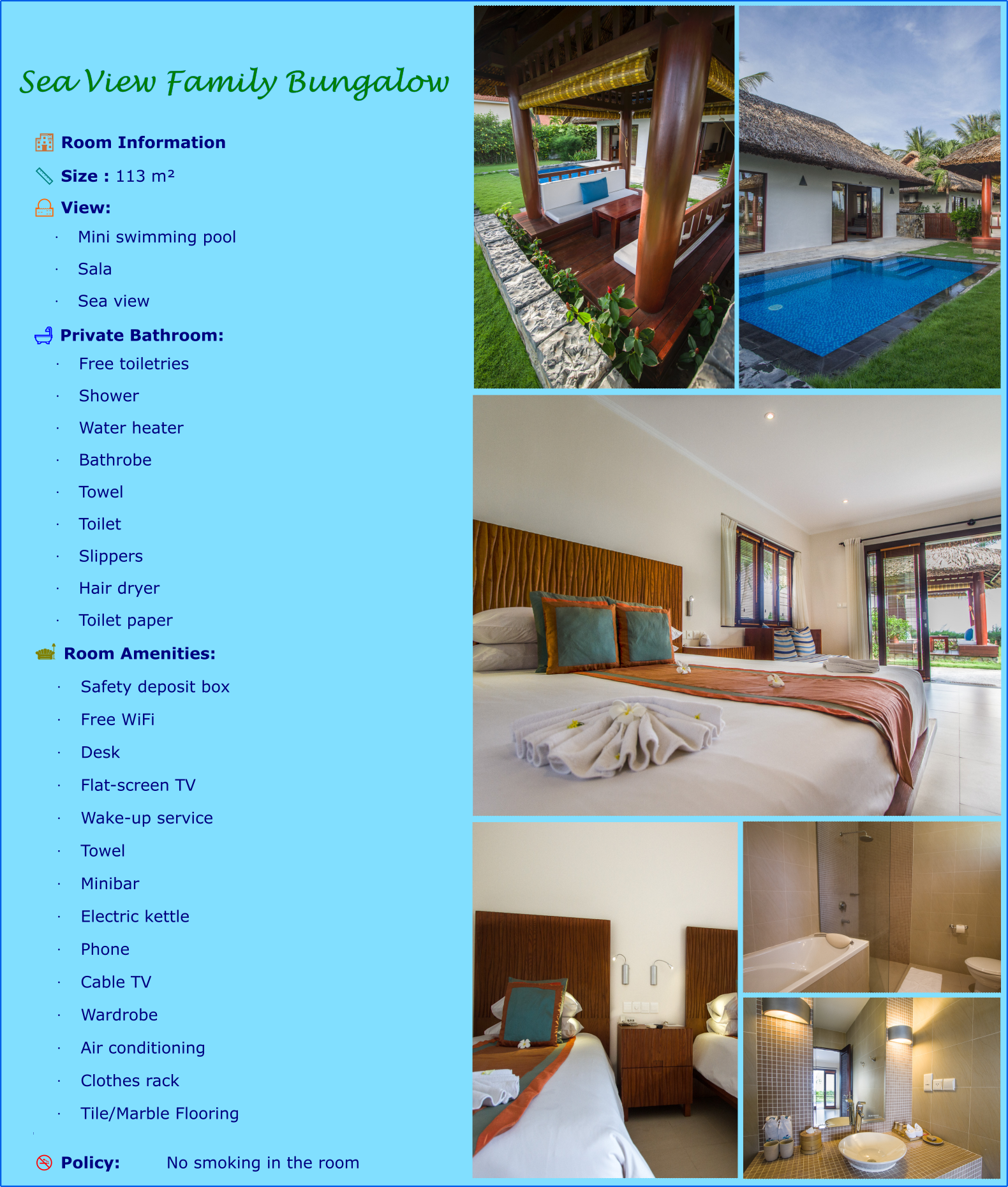 - Both Sea View Family Bungalows feature their own private plunge pool and outdoor sala (not inter-connecting)