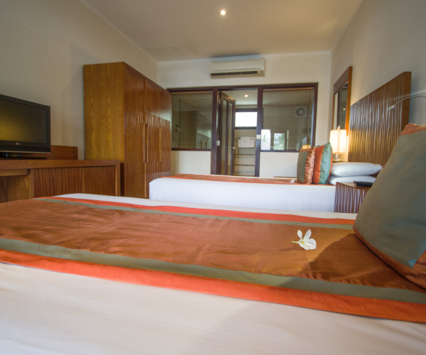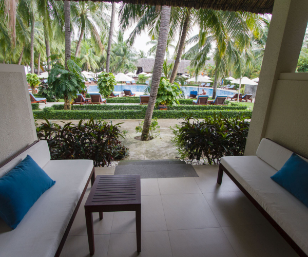 Right across the blue waters of the rosort's swimming pool are the pool view bungalows.